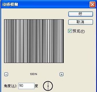 3、为了进一步产生竖条的纹理效果,我们可以通过“动感模糊”滤镜对杂点底纹进行处理实现。执行【滤镜】|【模糊】|【动感模糊…】命令打开【动感模糊】滤镜对话框,设置“角度”参数为90度;“距离”参数为999像素,完成后按【好】按钮