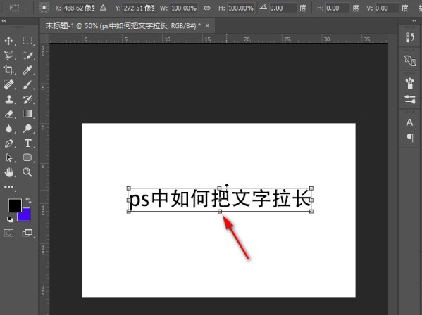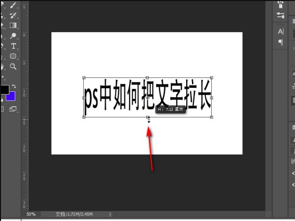 5、随后,完成上述步骤后,洞顷可以看出,当拖动时,文本已逐渐拉长,如下图所示,然后进入下一步。