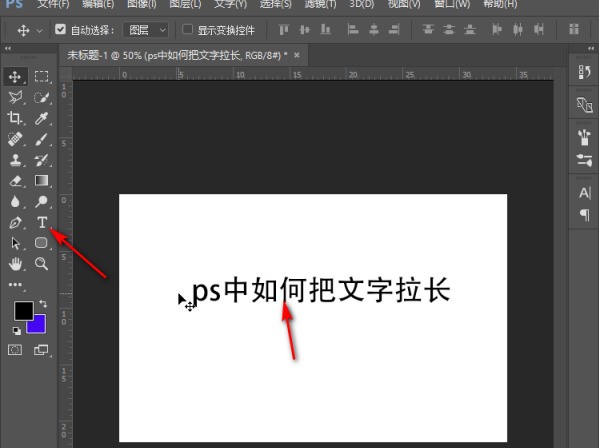 3、接着,完成上述步骤后,单击左侧的“文本工具”图标,在图层的空白区域想指持东诉段议输入文本,以演示如何在PS中拉伸文本,如下图所示,然后进入下一步。