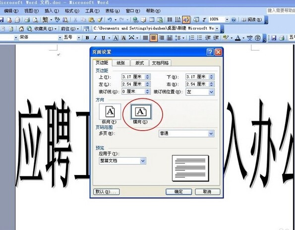 3. 在弹出的对话框中,选择“横向”布局,并点击“确定”。