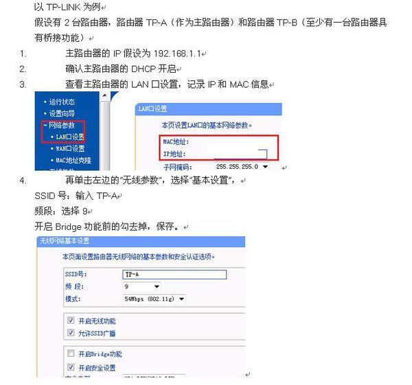 1. 连接主路由器和副路由器的LAN口,确保两个路由器处于同一个局域网内。