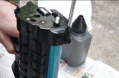 4、加完后,盖上塑料盖,装上端盖,拧好螺丝,推入打印机,盖好前盖。这些操作完成以后,碳粉就添加完成了。