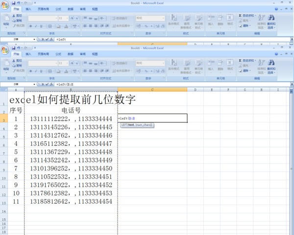 二、随机得到20位数字,由于EXCEL只能正常使用15位以内数字,将20位分为两段设计公式: