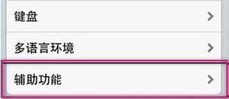2)用三个手指向上滑动,找到下面的“辅助功能”,轻按一次选中,再按二次进入“辅助功能”选项(如下图所示)