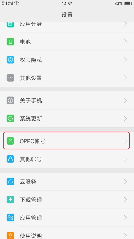 将手机上的当前OPPO账户退出,登录新的帐号即可,这里以OPPO R9S手机为例,具体方法如下:
