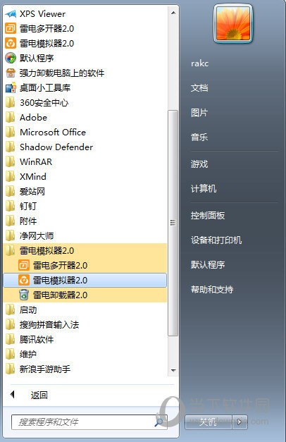 方法一:打开电脑【开始】,选择雷电模拟器卸载即可