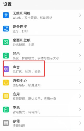 三、第二种情况,打开华为设置界面,点击打开“声音”。