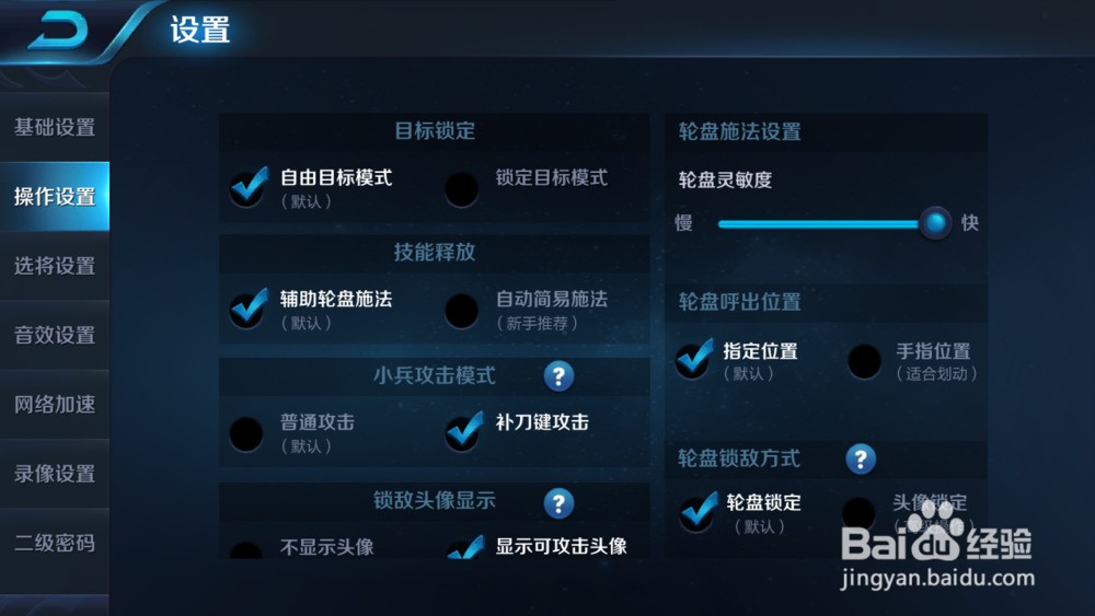 3.操作设置也很重要,但是如果玩家按照系统默认的设置玩游戏的话没必要改动这个,因为可能会不习惯。当然喜欢挑战的可以一试。