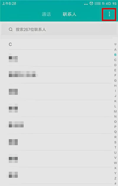 3、在联系人界面中可以看到只有手机中的联系人,找不到SIM卡中的联系人,点击右上角的【...】按钮。