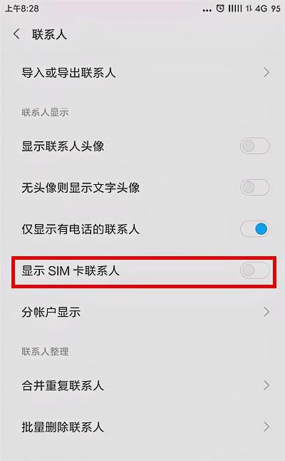 1、检查联系人设置进入联系人设置选项,查看是否勾选“SIM卡”联系人
