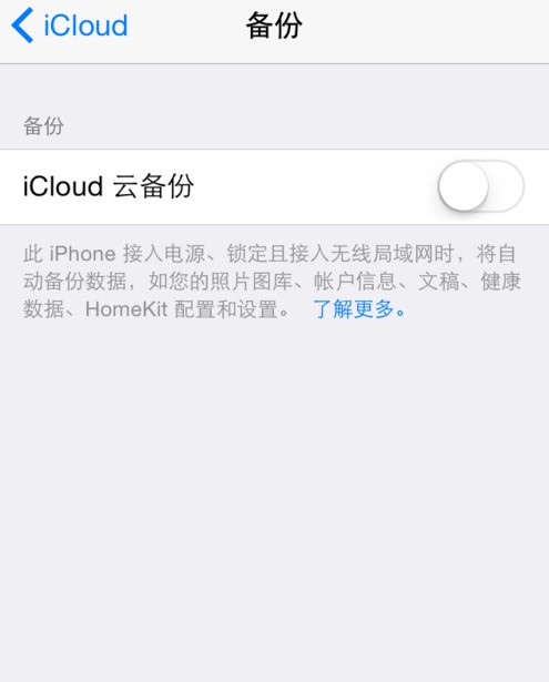 首先,用户在进入了“iCloud”的备份功能界面后,需要先行将“iCloud云备份”的选项进行一个向右的拖拽勾选操作。