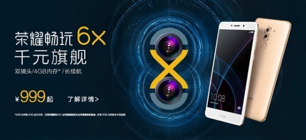 荣耀商城预约荣耀畅玩6X网址:http://mm.vmall.com/cw6x.html
