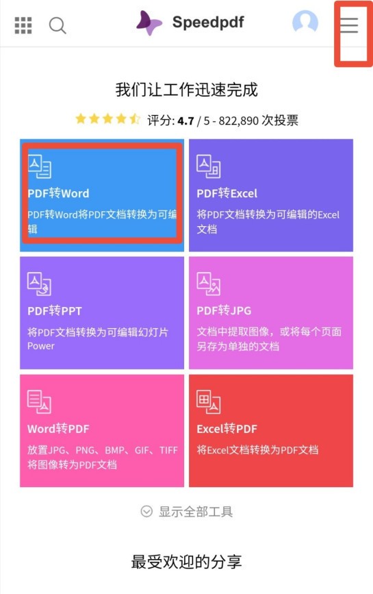 这是用软件的情况下,如果不想考虑下载软件,那可以试试在线操作。最好手机是有你这一份Word文件的,把它存到一个方便的文件夹容易找到的这种。现在就是手机在线Word转换成PDF。首先第一浏览器输入speedpdf搜索,然后会有很多PDF功能,点击Word转PDF;其次进入页面后,会让你打开文件添加进来,文件方便找可以直接添加进来;第三选择转换,等待反应;最后转换完成下载到你的手机。它不用登录直接用就可以了,每天都有免费使用的次数。这是我个人手机截图,点击那三个横线的是选择切换中文。