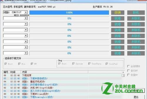 6、看到下载完成,显示综测,手机重启,点房子键(主屏键),之后有时自动重启,有时会在Recovery中,电源键选reboot。