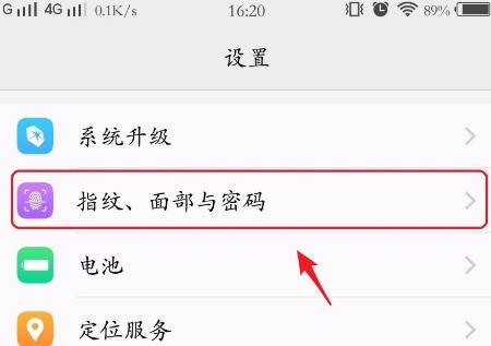 2、进入vivo nex手机设置页面后,找到“指纹,面部与密码”这一设置项。