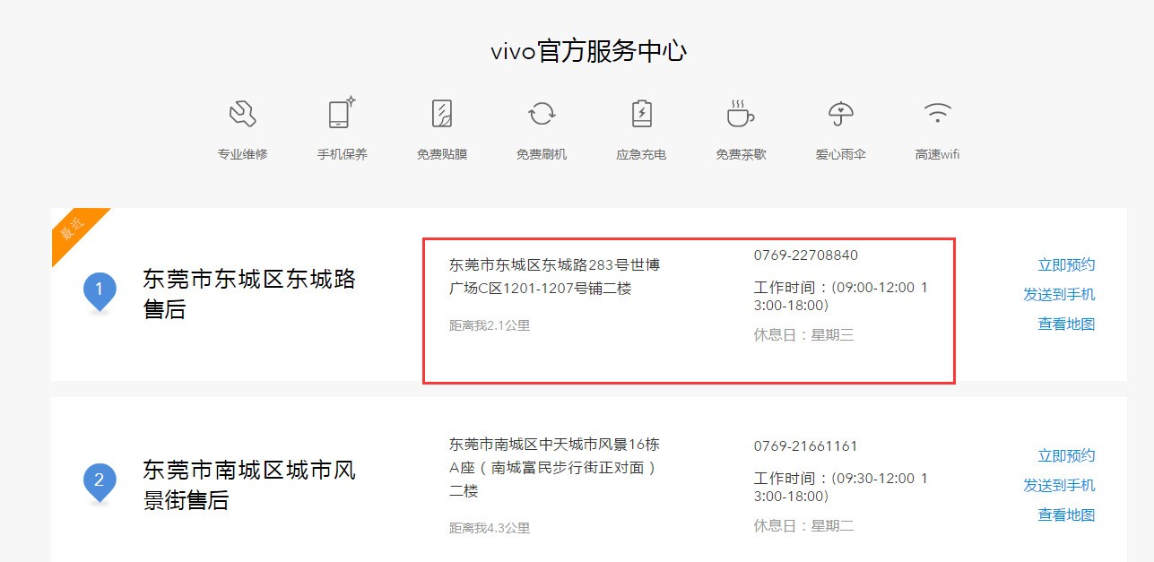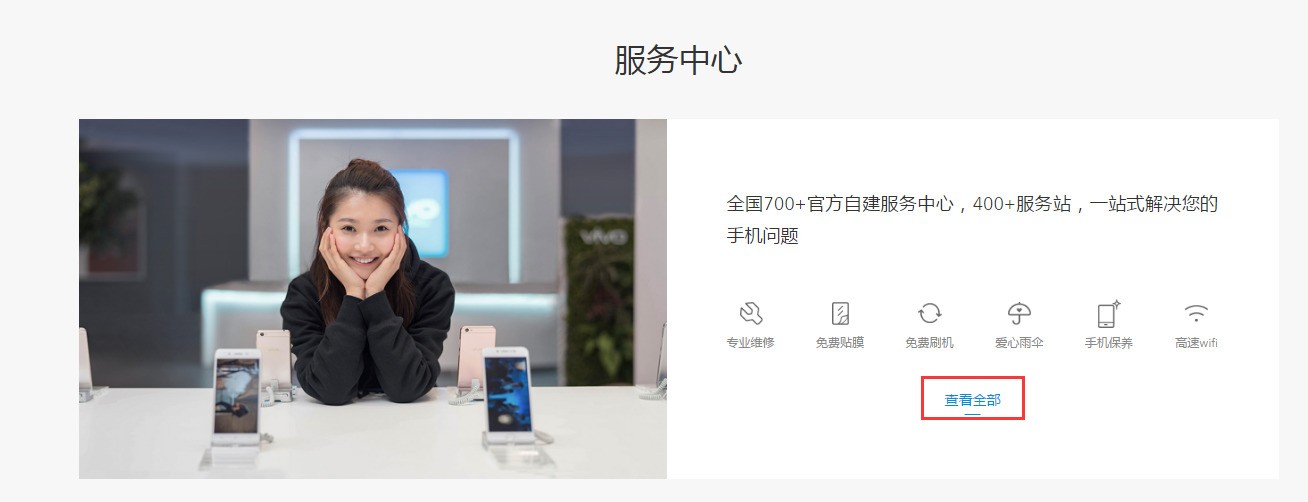 若清除所有数据还是无法开机使用,建议将手机携带好前往当地vivo售后服务中心检测处理,售后地址及联系方式可以在vivo官网-服务中心点击查看全部-选择所在省市-查询当地较近的售后服务中心即可。