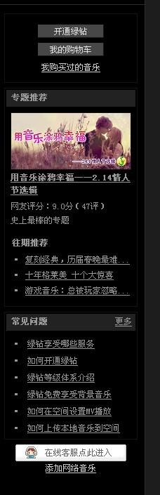 我可以给你说一下,上传网络音乐,要有音乐地址,你在百度是搜到你想要的音乐,点击查看属性,下面有个地址,把地址复制到空间音乐地址栏上就可以啦。但是有写地址是不可用的