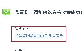 5,点击添加,最后显示添加网络音乐收藏成功,点击将这首网络音乐设置为背景音乐就可以了