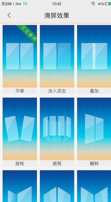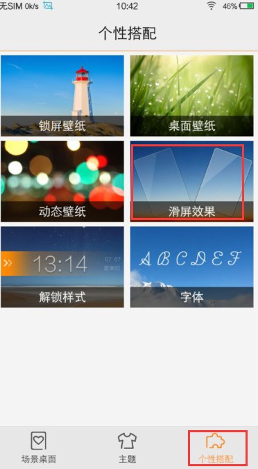 3、进入个性搭配找到喜欢的设为滑屏动效即可