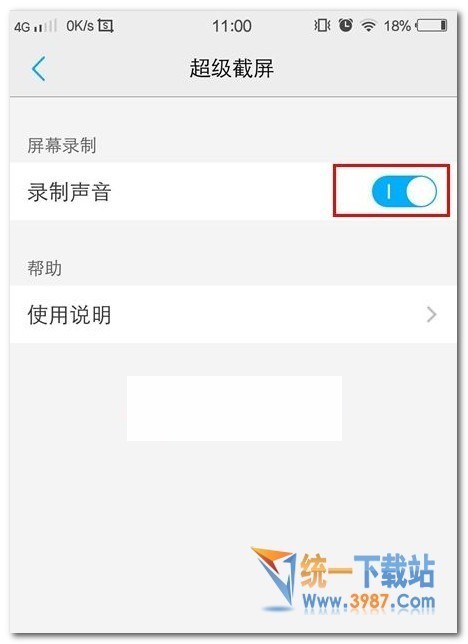 四、如果我们想让录制屏幕过程当中有声音,那么我们可以进入到门容改手机设置找到超级截屏选项,在其这个页面开启【录制声音】如下图所示。