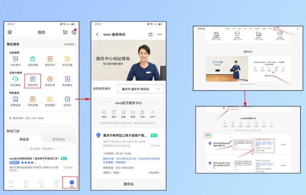 5、服务中心检测:若以上方法未能解决问题,请提前备份好手机数据,携带手机和购机凭证前往vivo客户服务中心检测;进入vivo官网/vivo商城APP-我的-网点查询或点击网页链接,选择当前所在的城市即可获取服务中心的地址与联系方式。建议去之前先提前电话联系,避免空跑,合理规划行程,安全出行。