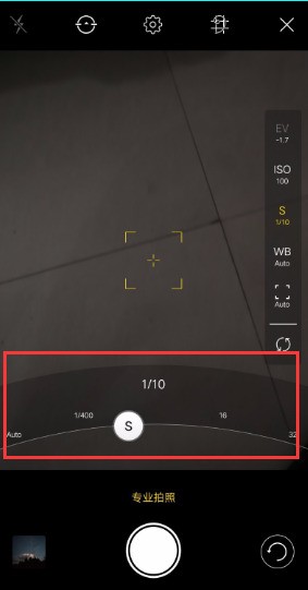 5、将快门设置为十分之一秒,缩短曝光时间,如下图所示: