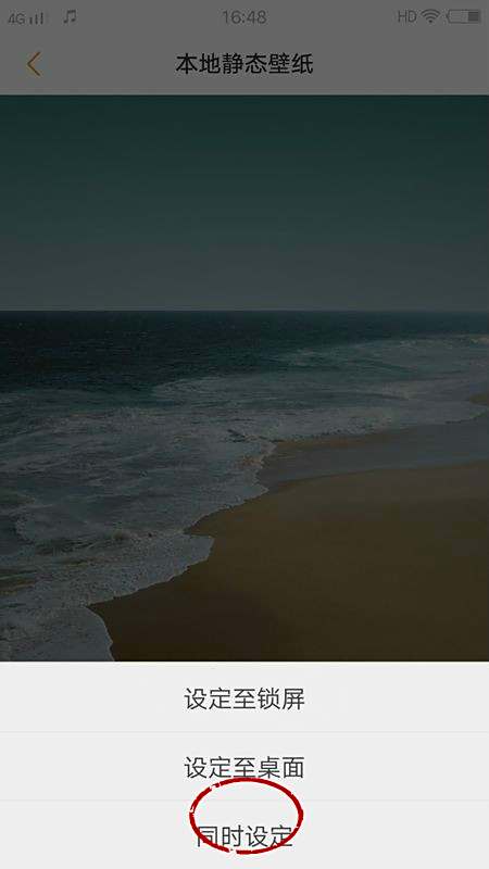 4、选择同时设定后,就可以看见手机桌面还有锁屏壁纸设置成一样的了。
