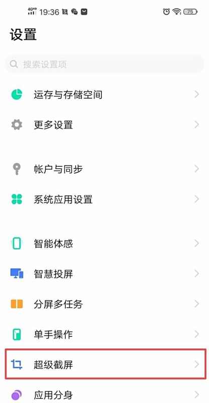 步骤二:进入超级截屏设置在设置界面中,找到并单击“超级截屏”选项,进入录屏功能配置页面。
