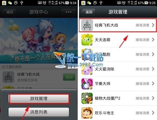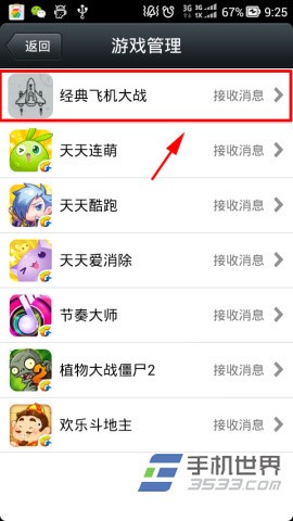 2)进入游戏管理后点击你想要取消授权的游戏,如小编示范的是经典飞机大战。(如下图所示)