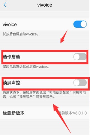 4、然后将“动作启动”和“锁屏声控”这两项的开关开启,这样就可以使用智能助手了。