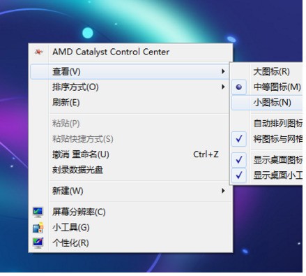 1、将鼠标指针放置于桌面图标上,按住键盘的Ctrl键,然后滚动鼠标中键,可以使得图标比上面的小图标模式更小