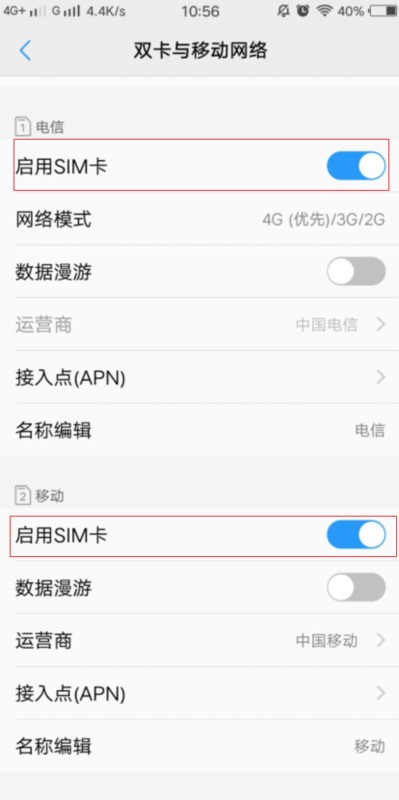 四、最后打开“启用SIM卡”的开关即可,这样就设置好SIM可了。