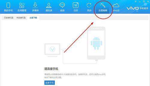 在vivo手机助手主界面左上角,找到并点击“主题编辑”选项。此模块专门用于主题资源的下载、编辑与应用,点击后会跳转至主题管理页面。