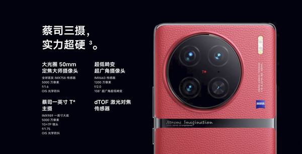 5000万像素蔡司主摄:采用了与索尼黑卡等一众专业相机同尺寸的传感器,面积相较上一代GNV提升了77%,能够轻松捕获更多的光线,提升成像品质。5000万像素大光圈50mm定焦大师摄像头:拥有出色的虚化能力,在拍摄人像画面时,能够提供更具专业质感的成像效果。1200万像素超低畸变超广角摄像头:为用户提供了更广阔的拍摄视角。蔡司T*镀膜与ALC亚波长仿生结构镀膜:所有镜头均采用了蔡司T*镀膜,同时在主摄上引入了ALC亚波长仿生结构镀膜,能够进一步提升镜头的抗眩光、鬼影性能,帮助相机输出更纯净的画面。