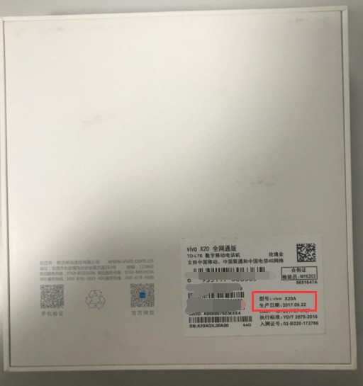 vivo手机包装盒查看生产日期如图(以vivo X20为例):