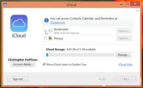 让我们开始吧,首先下载苹果公司的Windows版iCloud控制面板程序并安装。启动iCloud控制面板,然后用你的iPad或iPhone上的Apple ID登陆iCloud。