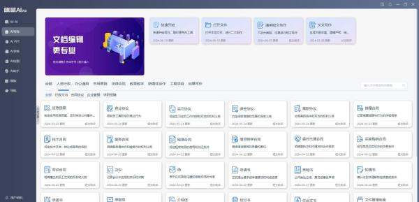 咪鼠小17支持长文写作和短文写作,通过键盘上的对应按键就能一键唤出。共支持100多种AI写作助手,涵盖人资行政、办公通用、市场营销、法律合同、教育教学、新媒体创作、工程项目、创意写作等八种场景。AI创作结束后,可以通过高级编辑器对内容自定义修改,还能带模板和格式导出,操作过程简单,生成效率高。