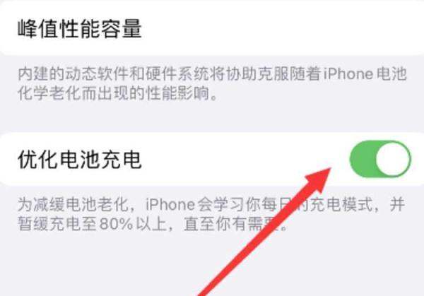 打开设置→点电池→再进电池健康。然后找到优化电池充电这个选项,把右边的开关滑成绿色就行啦~