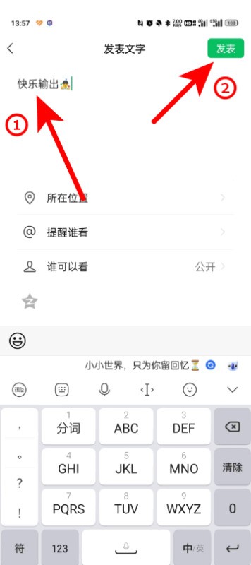 4、最后输入朋友圈内容后,点击发表就可以了。