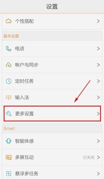 第二步;进入设置后,向下滑动,选择【更多设置】。