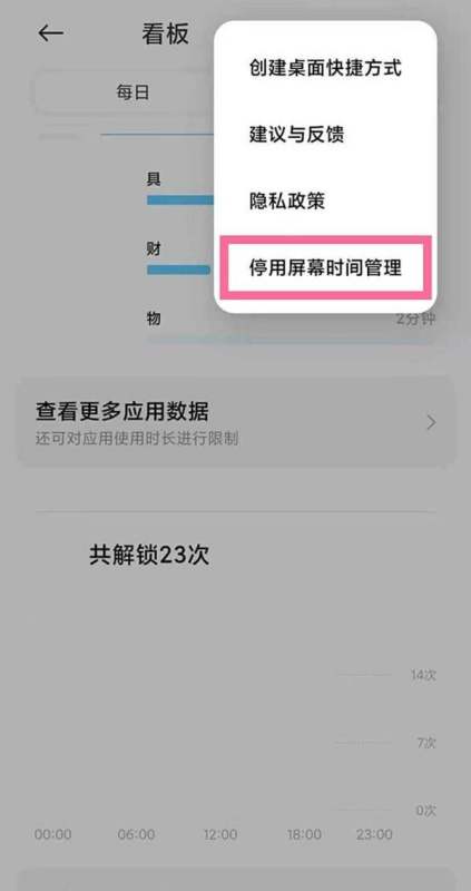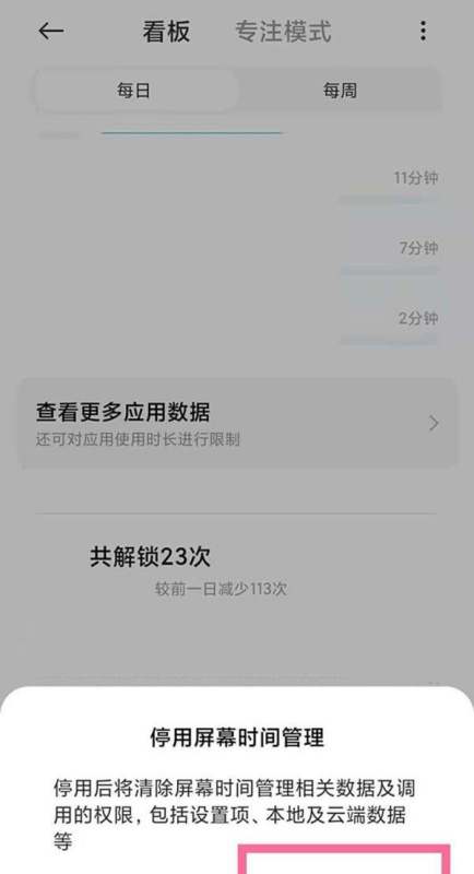 停用屏幕时间管理功能后,将无法再查看屏幕使用时间统计数据,也无法使用该功能提供的限制应用使用时间等功能。