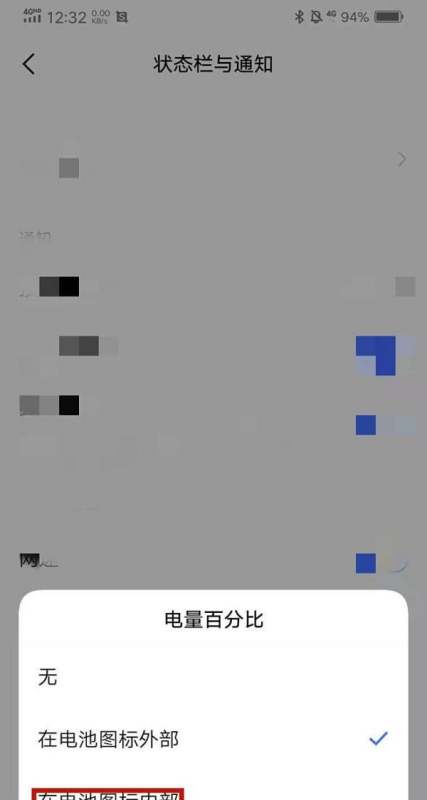 选择电量百分比显示方式在状态栏设置页面中,点击【电量百分比】选项,系统会弹出显示方式选择窗口。