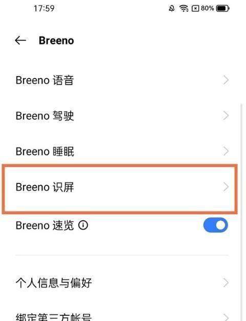 进入Breeno识屏设置:在Breeno功能页面中,选择“Breeno识屏”选项。此页面会显示与Breeno相关的所有功能,包括语音、识屏等。