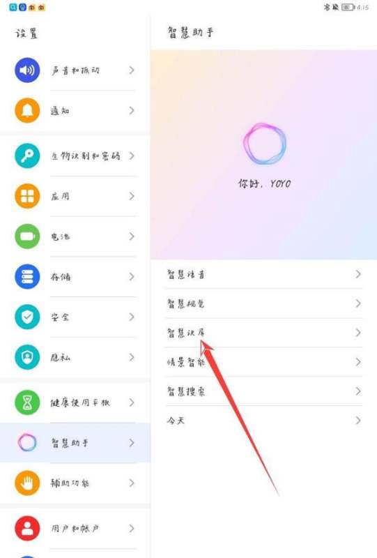 定位智慧助手选项:在设置菜单中点击“智慧助手”模块。
