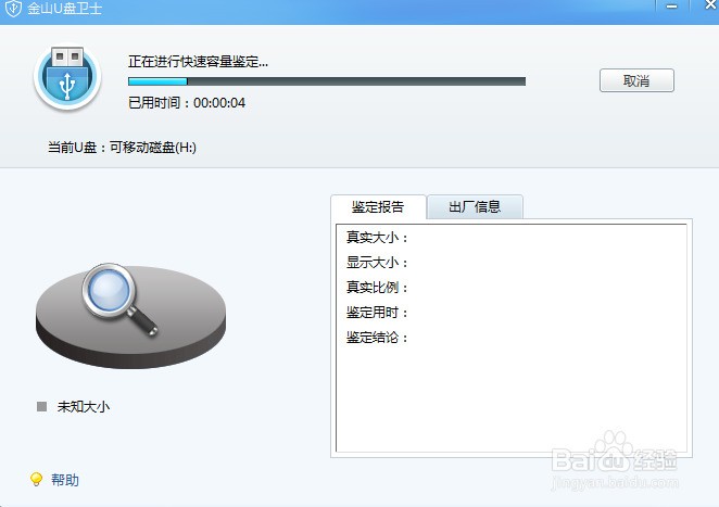 3.检查完毕如果有病毒点立即查杀即可,如果没有病毒,进行下一项容量鉴定,如图所示。