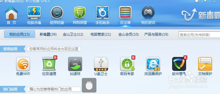 1.打开金山毒霸,并且插入U盘,如图所示。