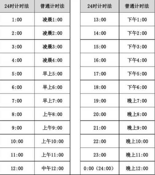 普通计时一般用“清晨”、“早晨”、“早晨”等来描述一天的时间从0点到中午12点;用“下午”、“晚上”、“晚上”等词来描述一天中从中午十二点到晚上十二点的时间。
