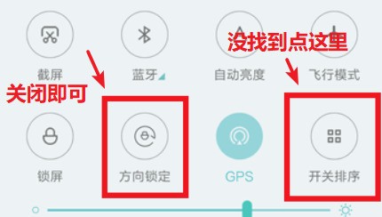 打开通知栏中就可以看到【方向锁定】功能了,点击即可关闭屏幕自动旋转,如果没有的话需要点击【开关排序】。