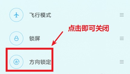 * 在状态栏中找到并点击【方向锁定】图标。当该图标变成灰色时,表示自动旋转屏幕功能已关闭。此时,无论您如何转动手机,屏幕都将保持当前方向不变。