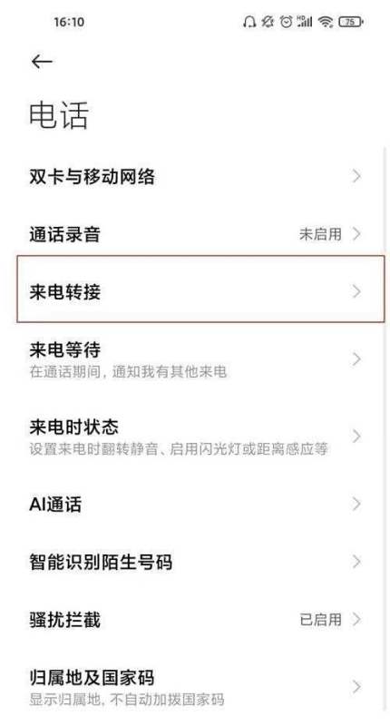 在设置菜单中,找到并点击“来电转接”选项。该功能用于管理所有与通话转移相关的设置,包括开启、关闭及转接条件调整。